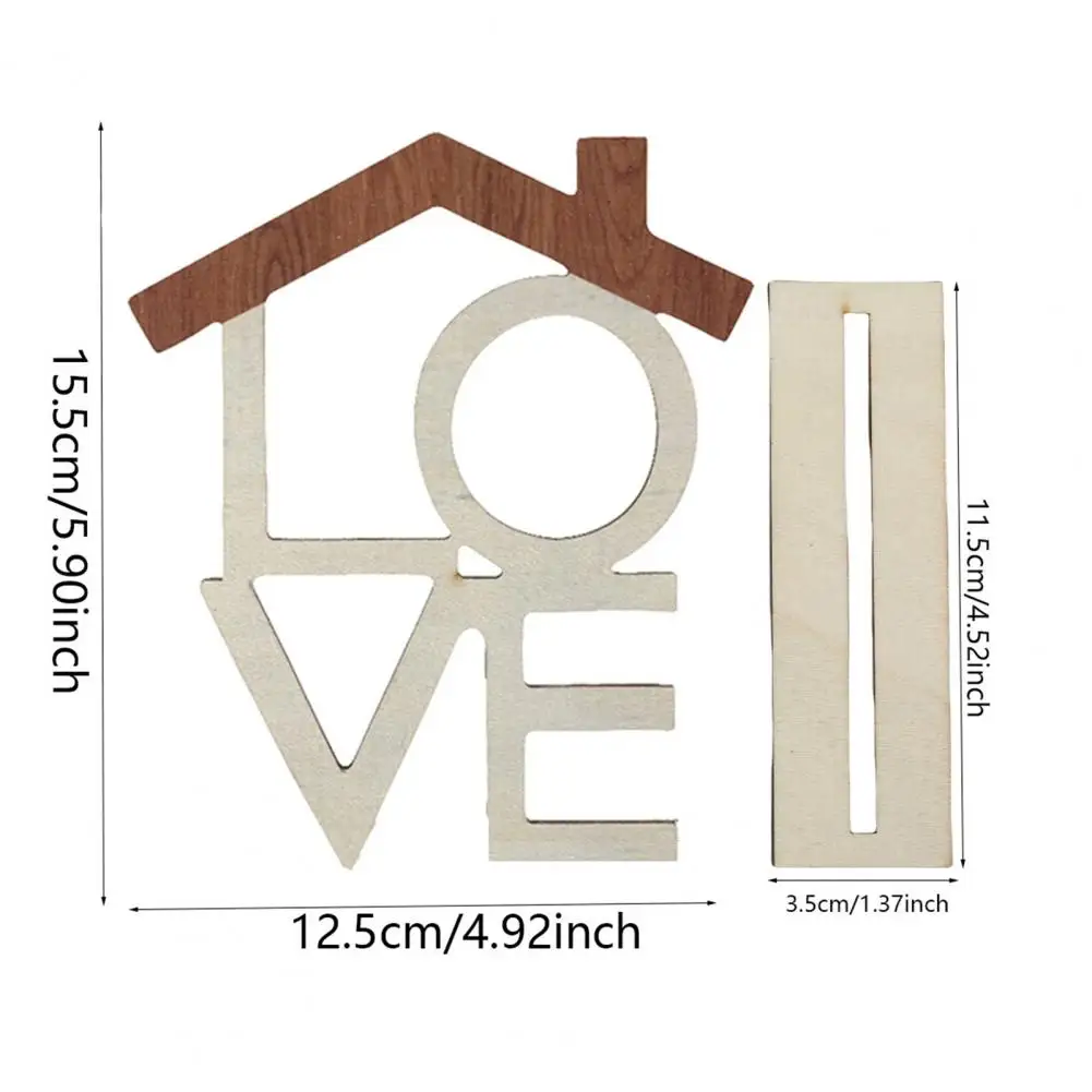 LOVE HOME Desktop Decoration with Wooden Base Home Office Living Room Table Centerpiece Hollow English Letter Ornament Christmas Gift